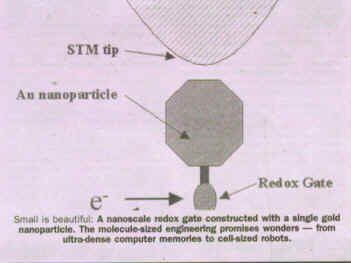 In a major breakthrough towards this end a team working at Liverpool University, north-west England, has linked a piece of gold just six nanometers (six millionths of a millimeter) across to a gold electrode to form a device called a redox gate.