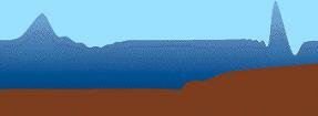 Fig 3--Amplification: Several things happen as the local tsunami travels over the continental slope. Most obvious is that the amplitude increases. In addition, the wavelength decreases. This results in steepening of the leading wave--an important control of wave runup at the coast.