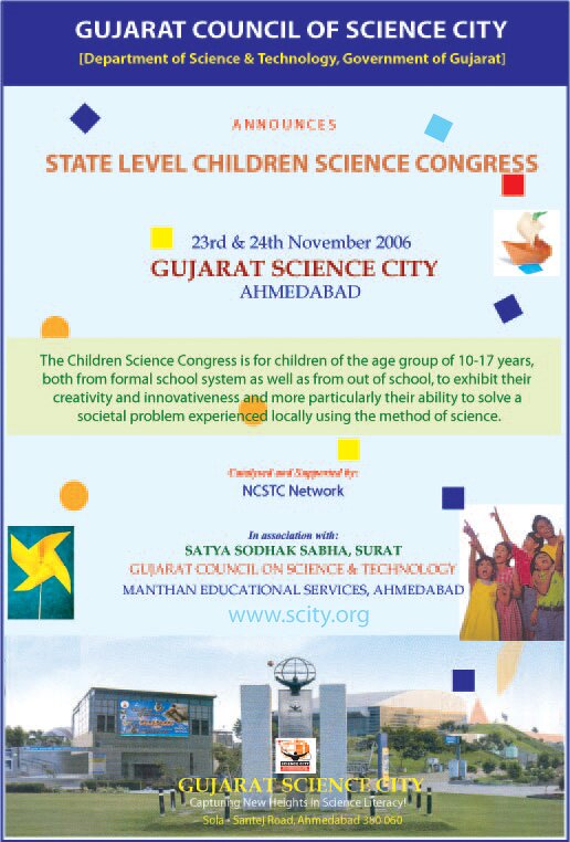 Gujarat Science City is organizing the State Level Children Science Congress during 23